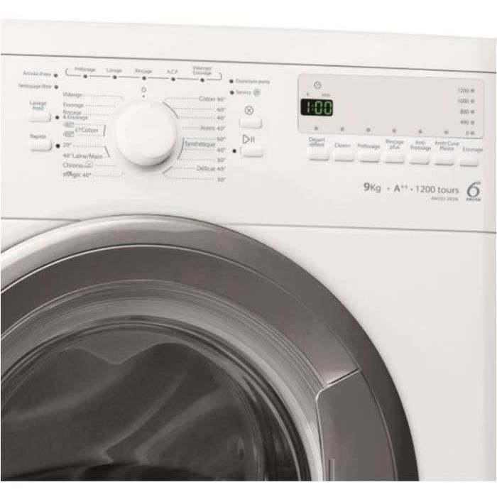 | Options et programmes spéciaux | Lavage rapide, prélavage, laine, fragile, lavage à froid, coton, produits synthétiques, Chrono 30° C, Baby, jean, coton éco, vidange, repassage facile, rinçage /essorage, option Clean+, rinçage intensif, couleurs 15°, défroissage en fin de cycle, option pause, rapide 30′, tous les jours à 40 °C |