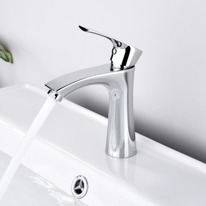 Robinet de salle de bain au design simple et épuré. La construction solide et la finition supérieure résistante à la rouille assurent une longue durabilité. Idéal pour un usage domestique et publique. Aérateur ABS détachable, l’eau douce et silencieux. Il est équipé d’un tuyau fileté fixe de 70mm, 10mm plus long qu’autres. Toutes les pièces de montage sont inclus. Hauteur sous bec:9cm.Saillie du bec: 9.5cm