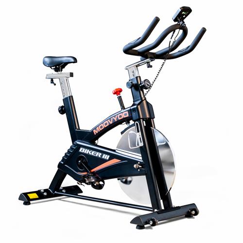 Le biking BIKER III de Moovyoo possède un nouveau design, ligne épurée. Inertie de 20 kg, pignon fixe avec système de frein d’urgence, transmission par courroie résistance manuelle avec différentes tensions, équipé d’un compteur avec 5 fonctions, selle et guidon réglables en hauteur et profondeur, prise de la fréquence cardiaque par capteurs tactiles. Exclusivité fitnessboutique !